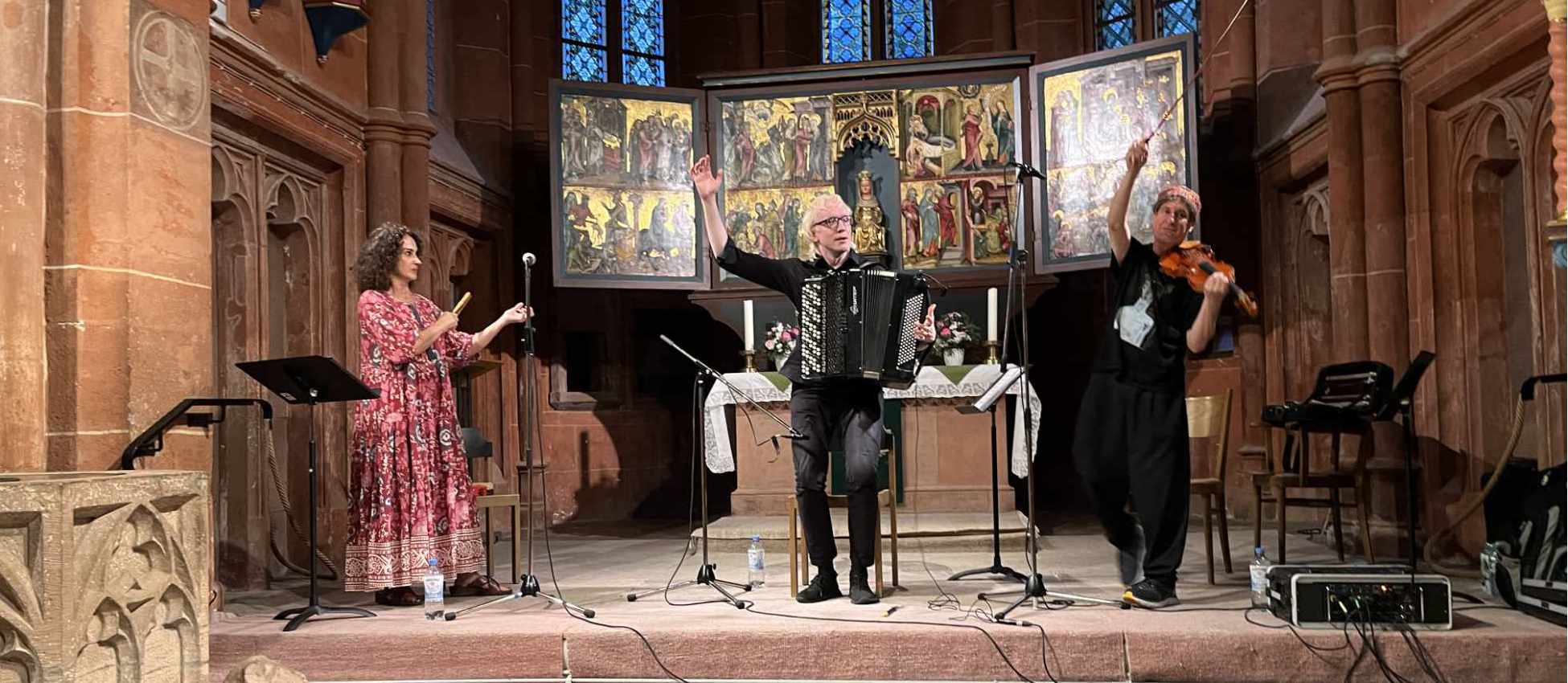 Martin Wagner (Akkordeon), Hanns Höhn (Kontrabass) und Andreas Neubauer (Schlagzeug) mit ihrem neuen Programm: German songbook.