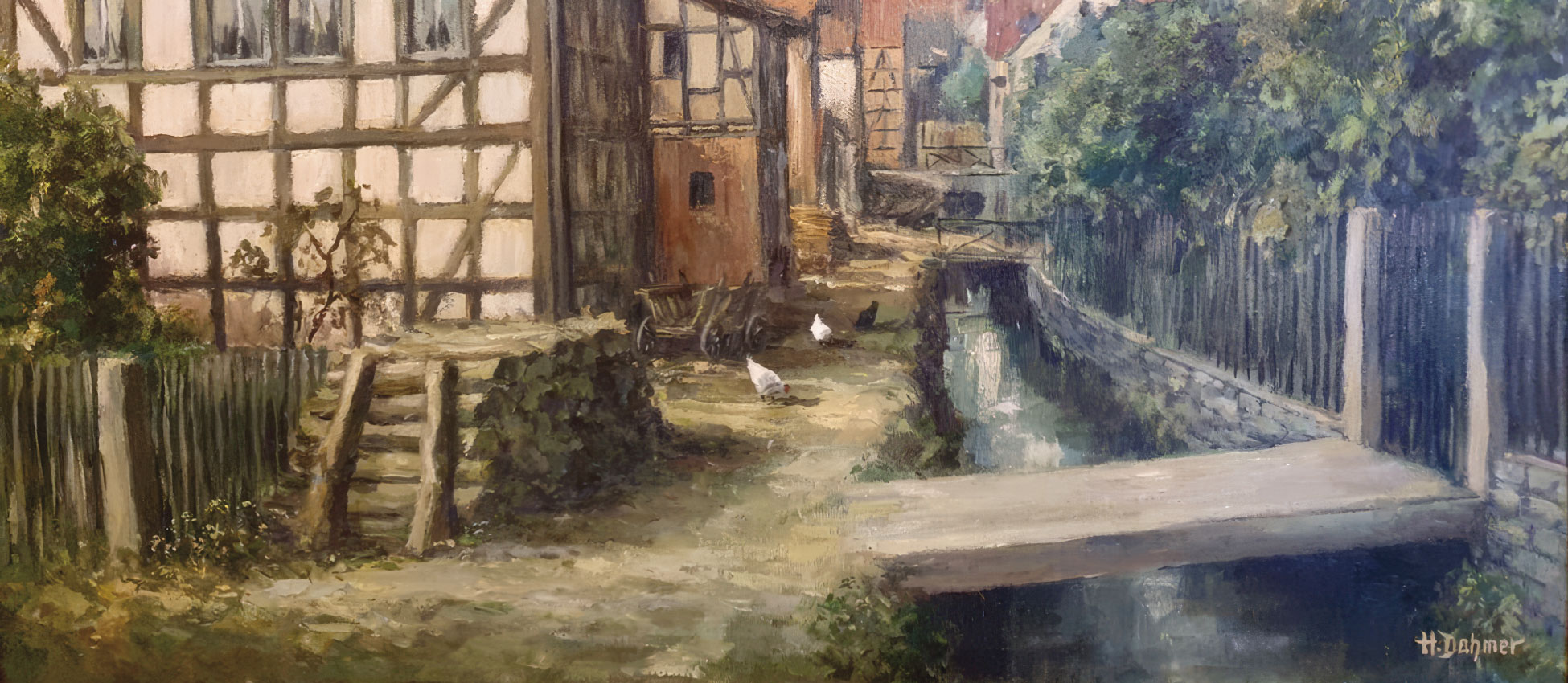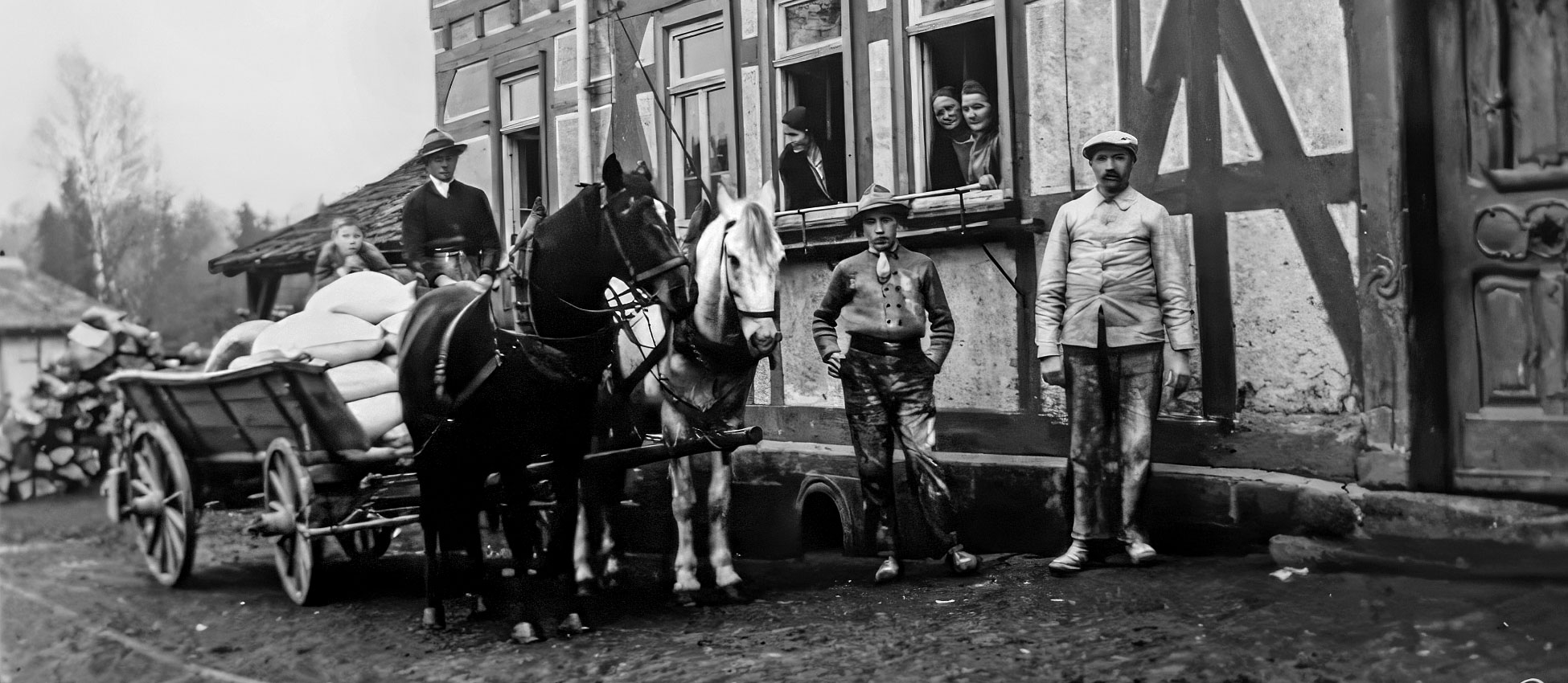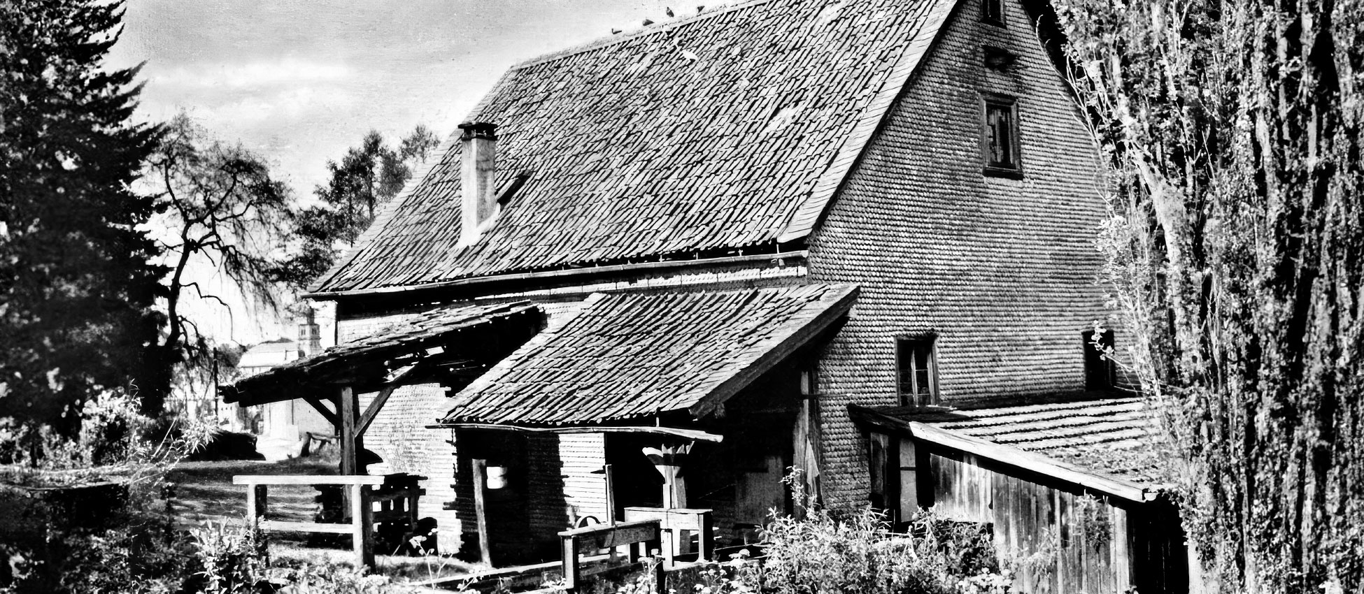 Das Gebäude der KulturSpinnerei hat eine lange Geschichte. Es zählt zu den ältesten noch erhaltenen Gebäuden in Lauterbach. Das Foto oben stammt von 1886, ist also eine der ältesten Fotografien überhaupt. Es gibt Einblick in den Alltag der Müller-Familie. Im Vordergrund fließt der Mühlgrabn offen auf das Mühlengebäude zu. Obwohl der Graben und der Baum heute längst veschwunden sind, die Mauer auf der linken Seite der Lauterstraße weichen musste und der Leiterwagen nicht mehr vor dem Haus parkt, ist doch unsere heutige KulturSpinnerei schon zu erkennen: Die Spuren aus der Vergangenheit führen bis in unsere Gegenwart.
