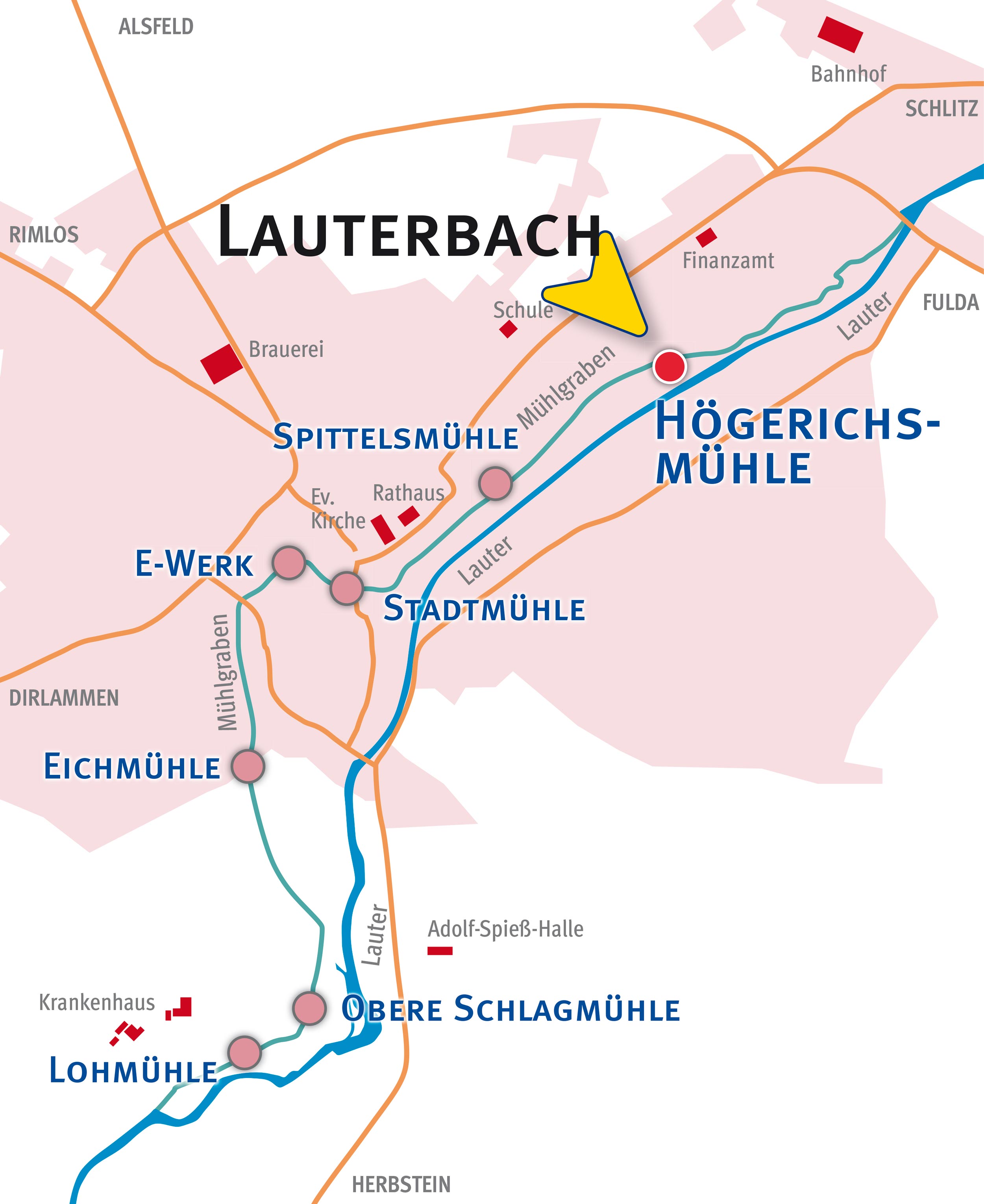 Die Högerichsmühle wurde 1328 durch Johann von Eisenbach erbaut und ging vermutlich nach 1428 an die Riedesel. 1615 erwarb die Stadt Lauterbach die Mühle und verpachtete sie. Der jeweilige Pächter hatte einen Diensteid der Stadt gegenüber zu leisten. 1692 wurde die alte Mühle wegen Baufälligkeit abgerissen und von einem Tiroler Zimmermann neu gebaut. Die Verpachtung erfolgte jeweils auf ein Jahr, wobei der Pächter verpflichtet war, am Johannistag zusammen mit dem Stadtwirt für den gesamten Stadtrat ein Festmahl auszurichten.